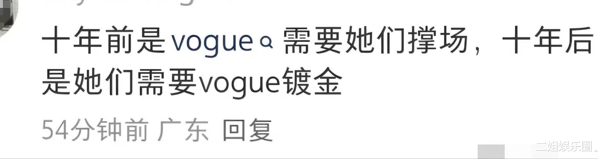 如同网友所言,10年前VOGUE需要她们撑场面,10年后是她们需要VOGUE镀金。