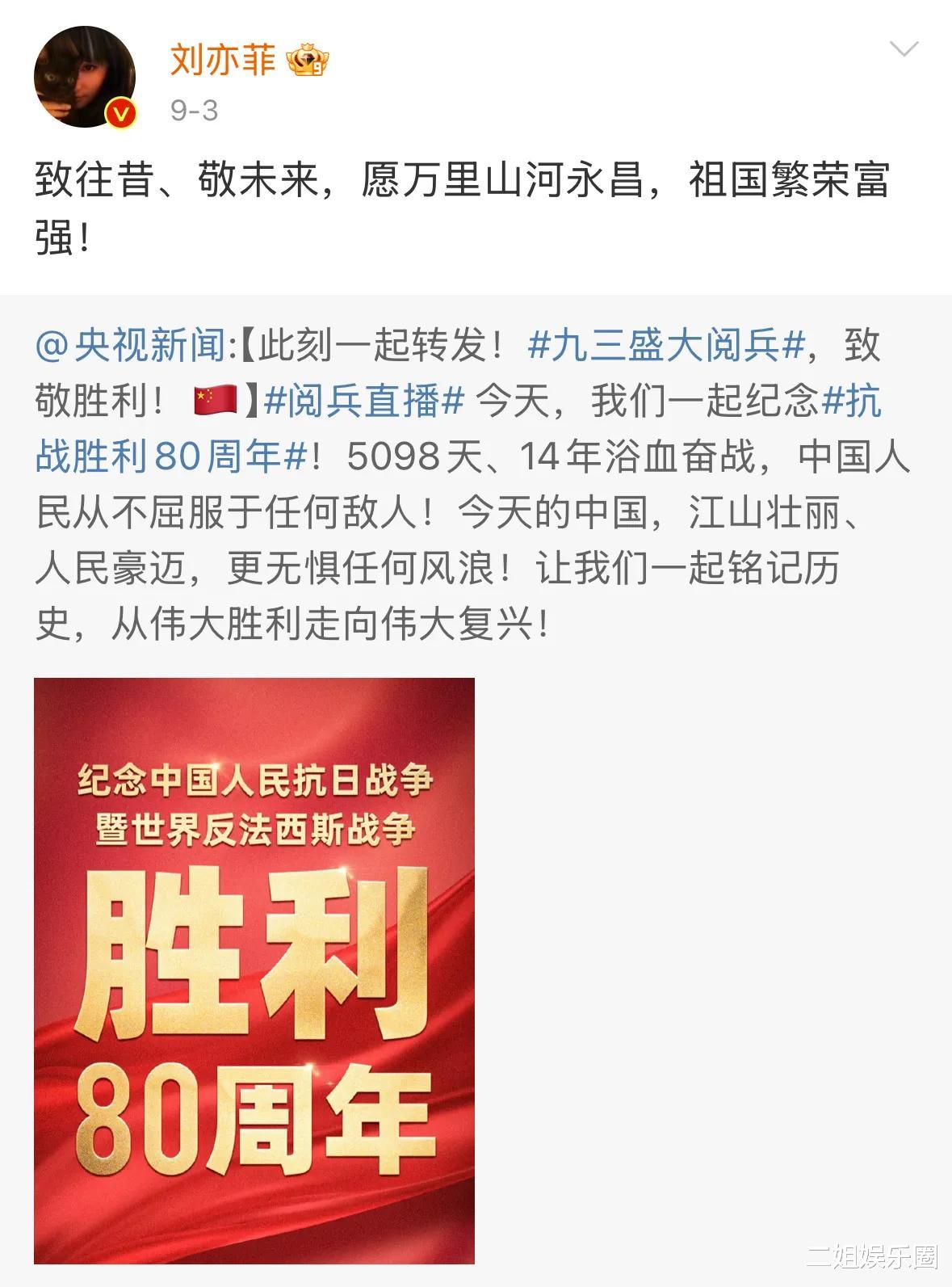更何况,前脚刚过的九三是全国大事,明星的任务博活动转发,她又一次搞了“小巧思”。