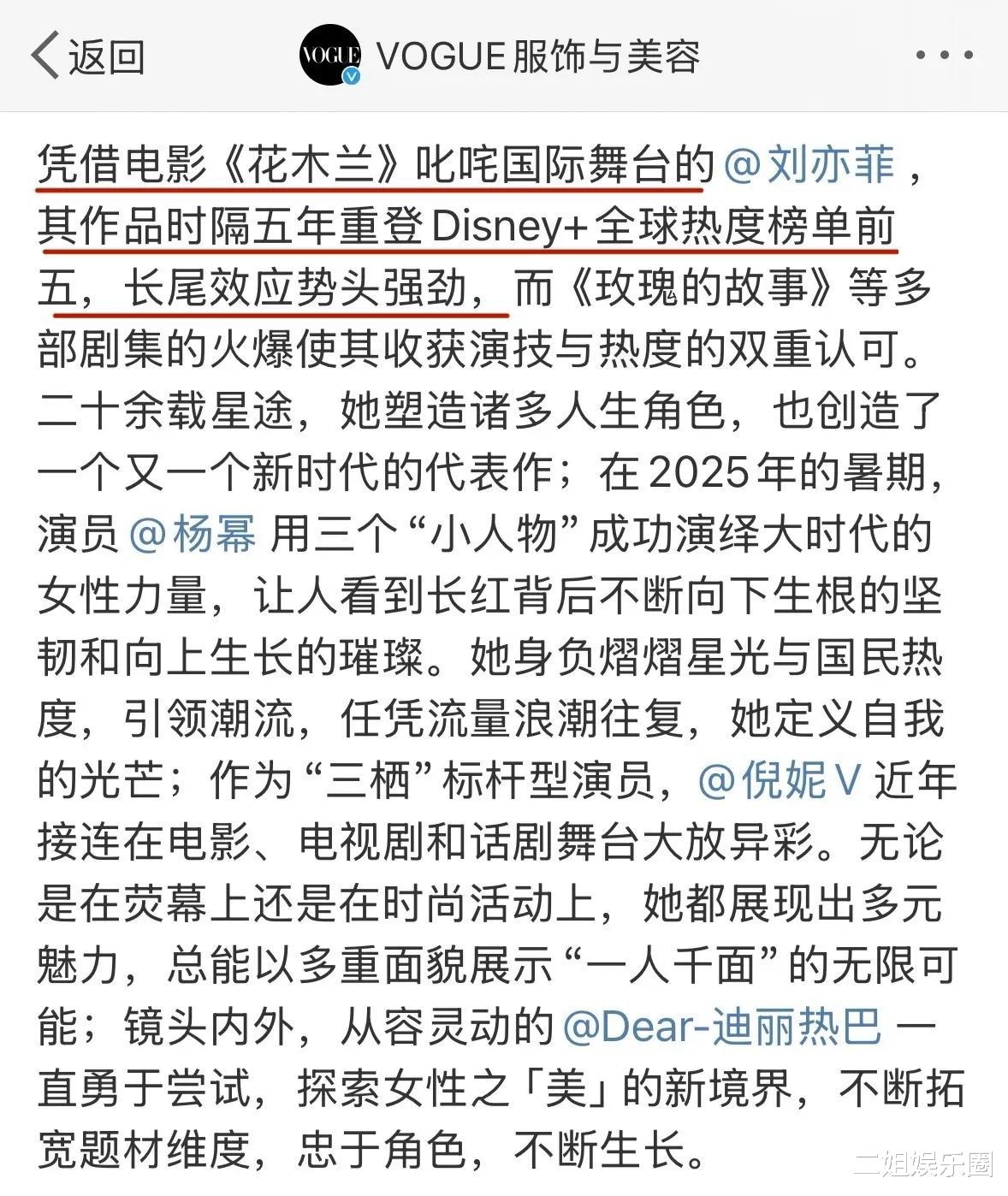 只有自家被讽“德不配位”,刘亦菲粉丝也只能挽尊,称杂志的站位看的是时尚资源、高奢代言,和作品演技无关。
