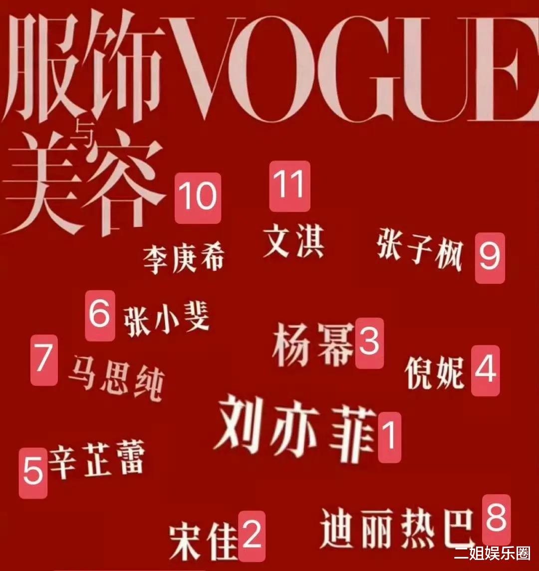刘亦菲占C显“心虚”?虽然说时尚杂志的站位,有时尚圈自己的衡量标准。