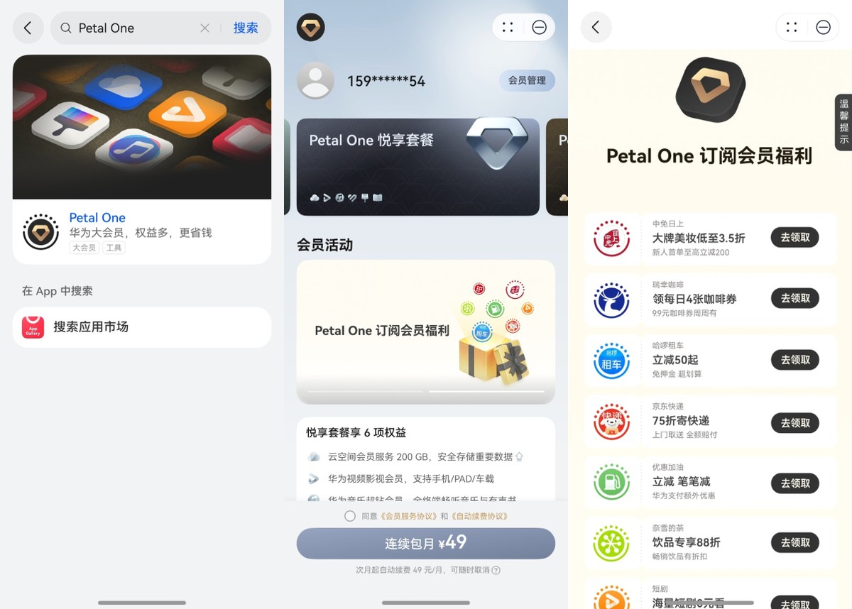 另外,如果春节期间大家觉得手机存储空间不够用,还可以开通Petal One大会员,它有畅享、悦享、尊享三种套餐可选,可以将包括云空间在内的多项权益一站式配齐,比单买划算太多。操作路径我都帮你们找好了:HarmonyOS 5.0及以上的用户,打开负一屏,进入元服务,搜索“Petal One或大会员”元服务,点击进入即可选择套餐订阅。新春将至,Petal One还为会员朋友们准备了一份新春心意!福利包含春节出行所需的同程旅行券包、哈啰租车券、优惠加油券等实用礼遇,符合条件的用户还可额外领取阅读会员、主题会员、表盘会员等专属权益,覆盖出行、娱乐等多重场景。好礼限量发放,订阅中会员快去领取你的专属福利吧!