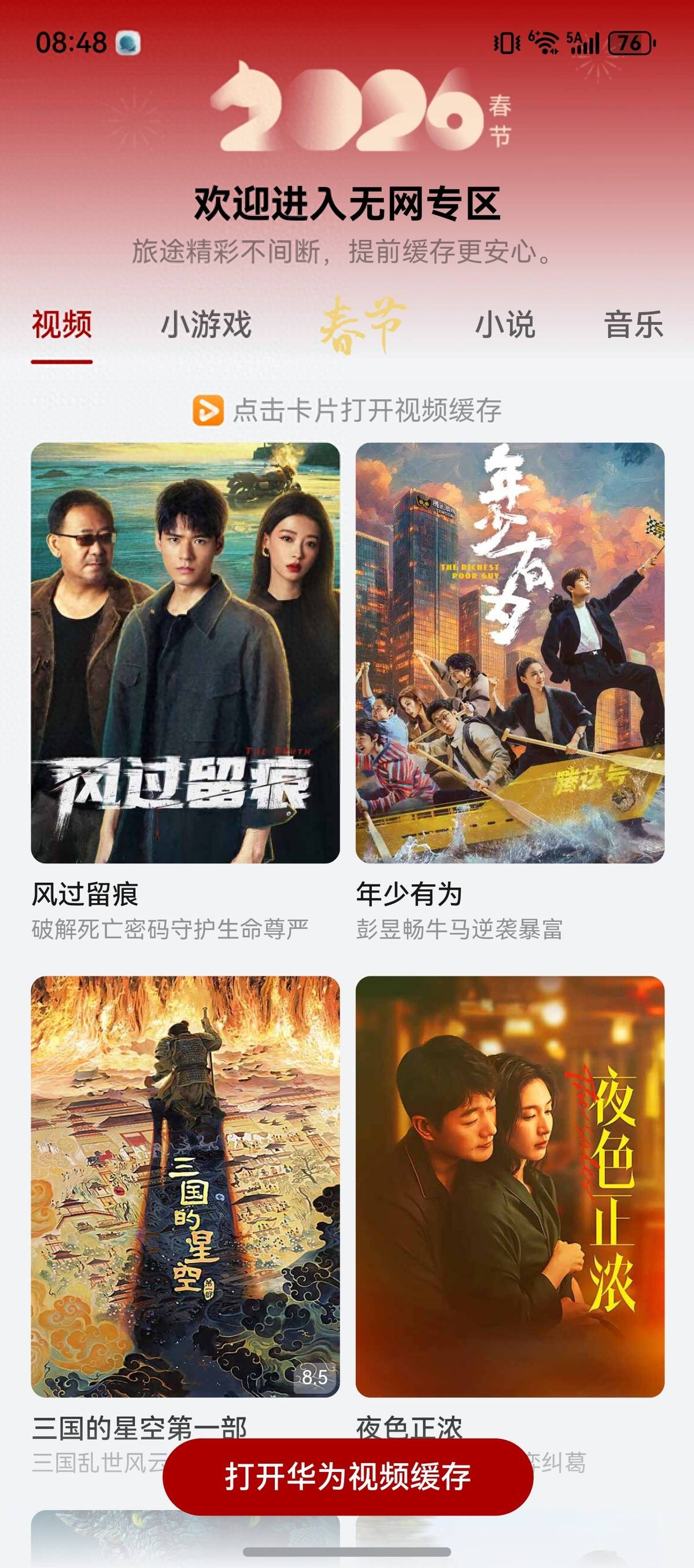 我刚换的鸿蒙手机就帮忙解决了这问题,真的太懂我春运回家路上的痛!就在我到达机场的时候,手机刚好推送「无网专区」缓存提醒,我提前在华为视频缓存几部贺岁片、到华为阅读的百亿赠书领取畅销佳作等“精神食粮”,即便飞机上没网络也能畅看畅读!