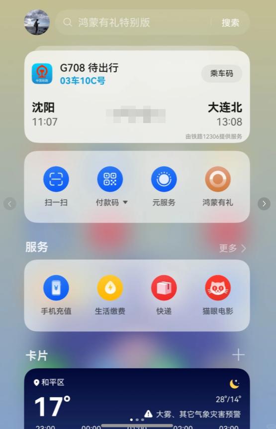 当然,春节的主题永远是团聚和陪伴。不管是通过春运回家团聚,还是计划与家人一起度假,行程安排都得井井有条 。这时候手机桌面右滑的负一屏就太重要了,这里集成了铁路12306、航旅纵横、同程旅行和停车卡片等各种服务 。在出行场景下,无论是随时查看车票信息,还是一键获取停车位置,都能让你在春运期间得心应手,主打一个“所见即所需”,再也不用手忙脚乱地找各种App了 。