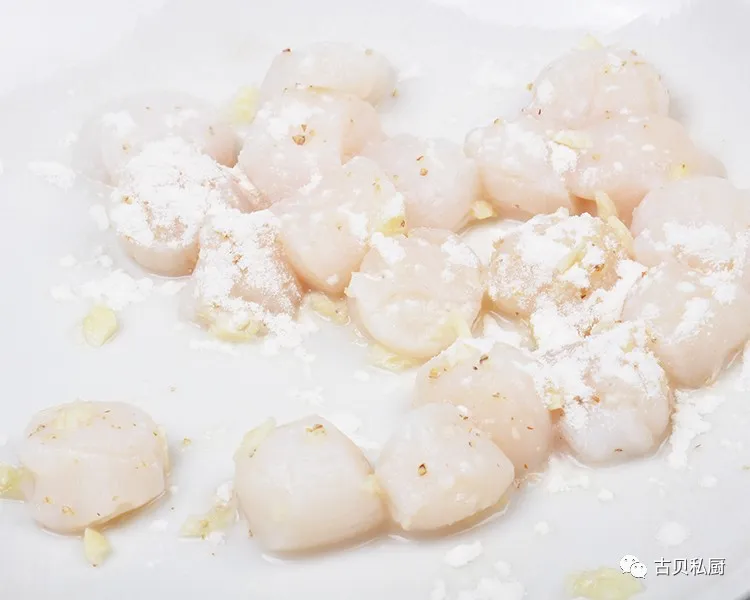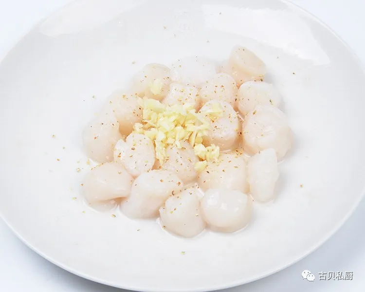 3、1瓣蒜剁成蒜泥也撒在扇贝上用来调味