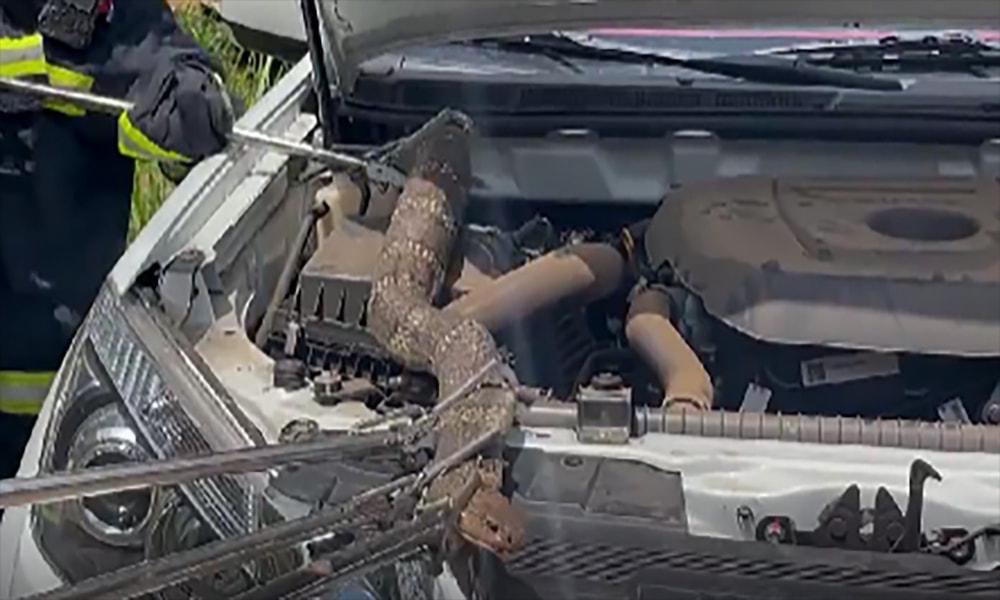 可怕!攀枝花米易惊现14斤重3米长剧毒眼镜蛇,因太胖卡在引擎盖 进入4月以来“蛇出没”事件可谓越来越多了,无论是沿海的广东、广西还是内陆的四川、云南,十多斤、几十斤的大蟒蛇、几米长的毒蛇都纷纷告别冬眠开始频繁活动。这不,近日攀枝花米易的一汽车引擎盖里也发现了一条大蛇,不过和它恐怖的外形形成鲜明反差的是,它居然被卡在里面了。 据说当时为了把它拖出来,还是在两名消防员的合力下,一名消防员用捕蛇器抓住蛇头,另一名消防员直接用手将大蛇身体拖出来,最后才成功将它从引擎盖里弄出来。经过专业人士辨认,它是一条剧毒的眼镜王蛇,不得不说也是十分惊险了,幸好没有伤到人。 据统计,全球蛇的种类有3425种,而中国就占据了241种。而随着我国生态环境保护力度增强以及野生动植物种群的不断恢复,如今蛇的种类和数量肯定会有增无减。蛇有这么多种,但是眼镜王蛇却被称为“毒蛇之王”。这一称号不仅是因为它本身就剧毒无比,更在于它的食物链里居然就有毒蛇,加之毒液喷射量大,所以让很多人都很惧怕。 关于蛇究竟怕什么民间有很多说法,比如风油精、酒精尤其还有雄黄。但是无论是诸多实验还是专家出面辟谣都已经说明了,其实蛇并不怕雄黄,只是单纯的不喜欢那个味道。当一个具有一定诱惑力的食物摆在面前,饥肠辘辘的蛇依旧还是会毫不犹豫地就跨过雄黄线捕食。因此想要避免毒蛇伤害,人类目前最佳的方法就是尽量避开蛇可能出没的地方。如果真的被蛇咬了,选择尽快到医院注射对应的抗蛇毒血清。