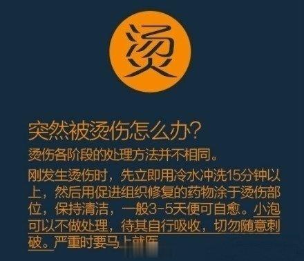 【烫伤之后的小知识】别等遇险时不知所措!冷敷要及时,防止破皮和感染,忍住后期发痒。
