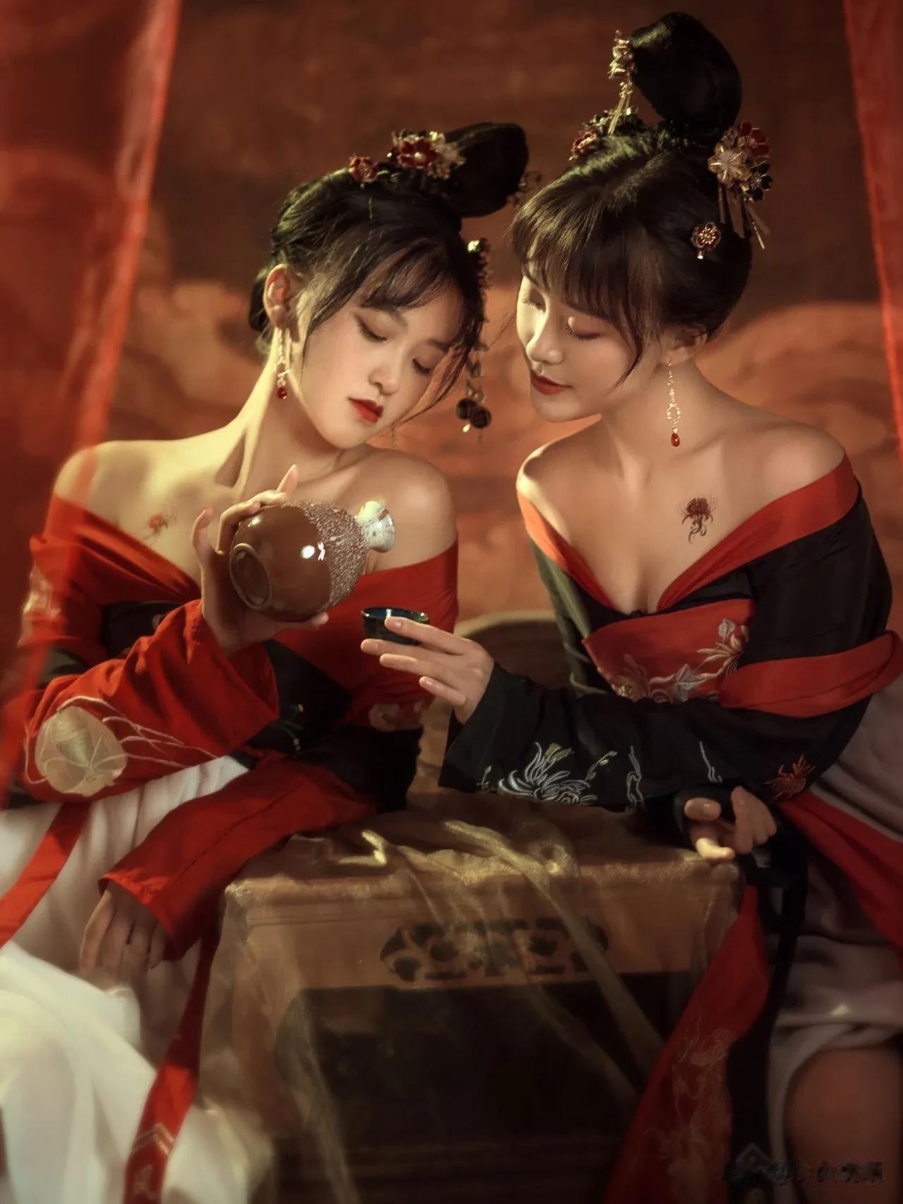 头戴簪花,纹彼岸,红衣白裙点朱唇息🌹 勾起花容,你与我为共饮之人 媚而不俗,艳丽夺目✨ 古色古香中一朵双生花華带着一丝丝性感 举手投足间都妩媚动人,让人欲罢不能❤️