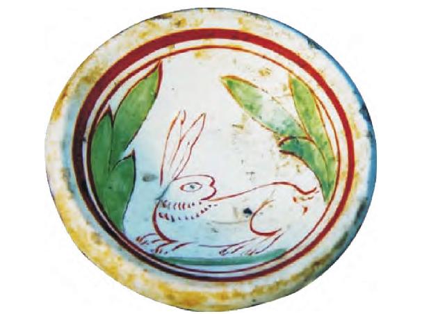 生肖贺春,兔子在中国一直被认为是瑞兽,古人认为,兔是卯时之神。而卯时正是清晨五时至七时,太阳徐徐东升之际,这时总是充满着无限的生机。所以,以兔为形象的文物不胜枚举。 早在新石器时代,石家河文化时期已有兔形的陶塑。湖北省天门市邓家湾遗址出土了上万件陶塑,包含动物、人偶等。其中有一件,它的特征一望可知,极易辨认,兔昂首翘尾,四肢叉立,突出了大耳和短尾。这件文物展现了远古先民精湛的艺术创造力,通过先民的陶塑我们仿佛看到了小兔子蹦蹦跳跳的样子。 兔子以可爱活泼的形象深入人心。在河南鹤壁的一家博物馆中,收藏了一件金代的红绿彩兔草瓷碗。这件器物,白釉为底,用红线勾勒出来白兔的形象,并且在旁边涂绘绿彩填充草丛。朴素自然的画面,抓住小兔猛地回首的瞬间,动感极强,而用绿彩点睛,恰到好处。这件器物充分展示出兔子的灵气和浓厚的生活气息。 参考文献:王蔚波:《古陶瓷中的兔及其相关问题论》