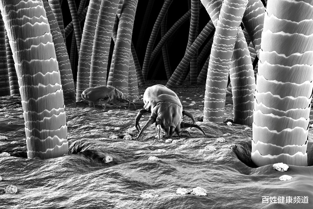 需要注意的是,螨虫会随着扫地、铺床叠被等人体活动进入空气,分散到室内各个角落,地毯、沙发、地板都是常见的藏螨死角。