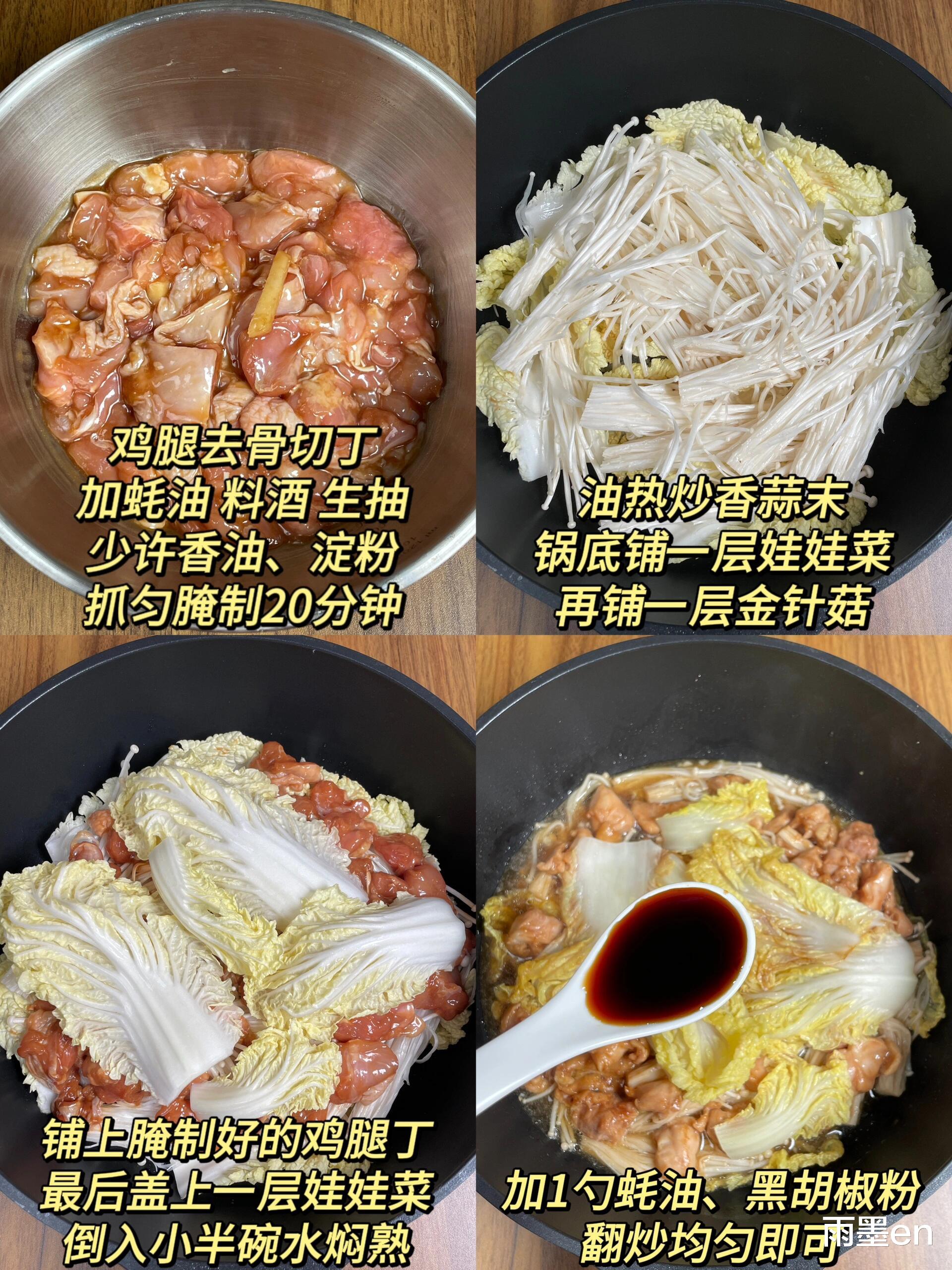 如今自己在外打拼,每到秋冬降温就会想起这道菜。动手做一锅,熟悉的味道瞬间就能抚平所有疲惫。家常美食的魅力就在于此,不用复杂的工序,普通的食材经过用心烹饪,就能变成治愈人心的美味。这道一锅炖的娃娃菜金针菇焖鸡腿,你也赶紧试试,相信会成为你家秋冬餐桌上的常客!