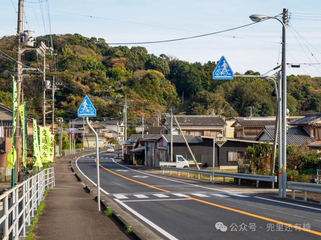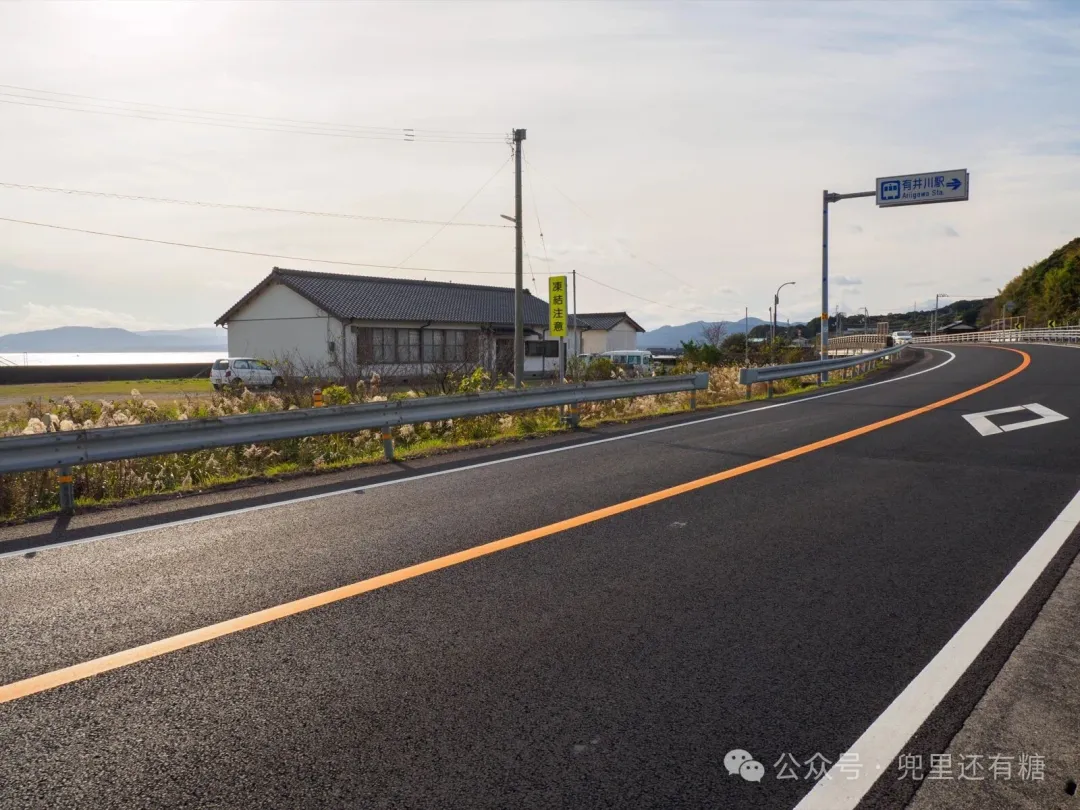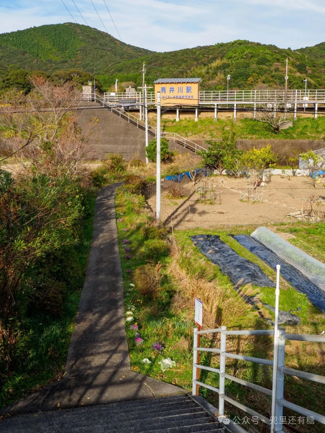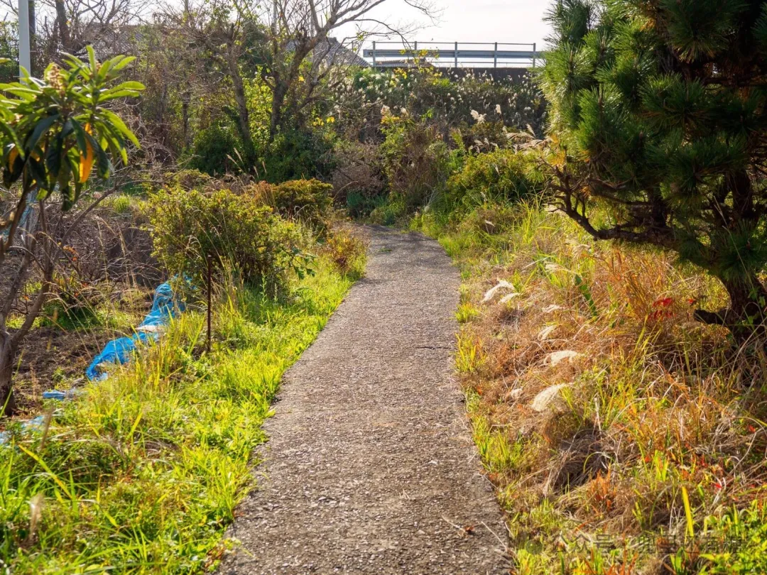 出站后,沿着国道56号线朝海边行驶。下楼梯然后右转...有一条狭窄的小路通向田野。两边都是茂盛的植物,给人一种冒险的感觉。