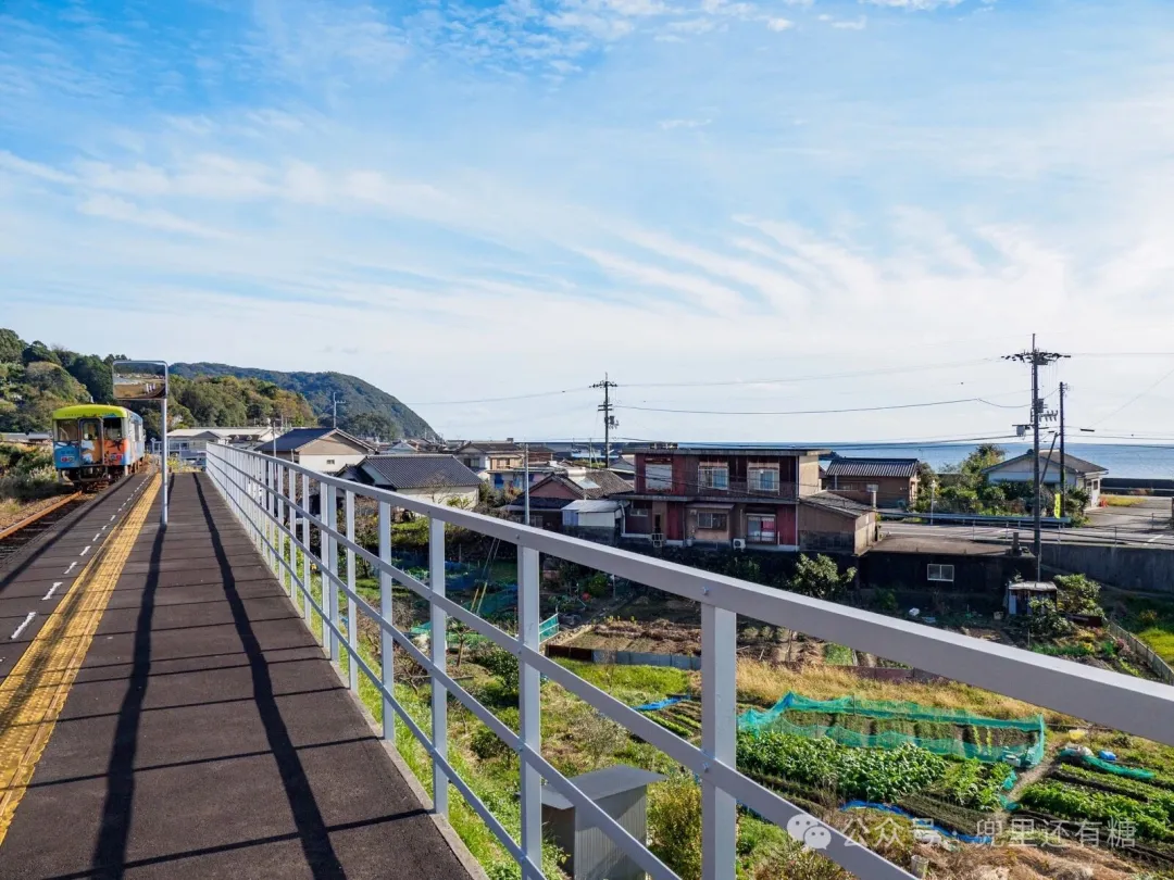 有居川站面向高知县西部的土佐湾。从地势稍高的开阔平台上,可以眺望田野、村庄和太平洋。从堤坝顶部的露天平台可以看到太平洋。