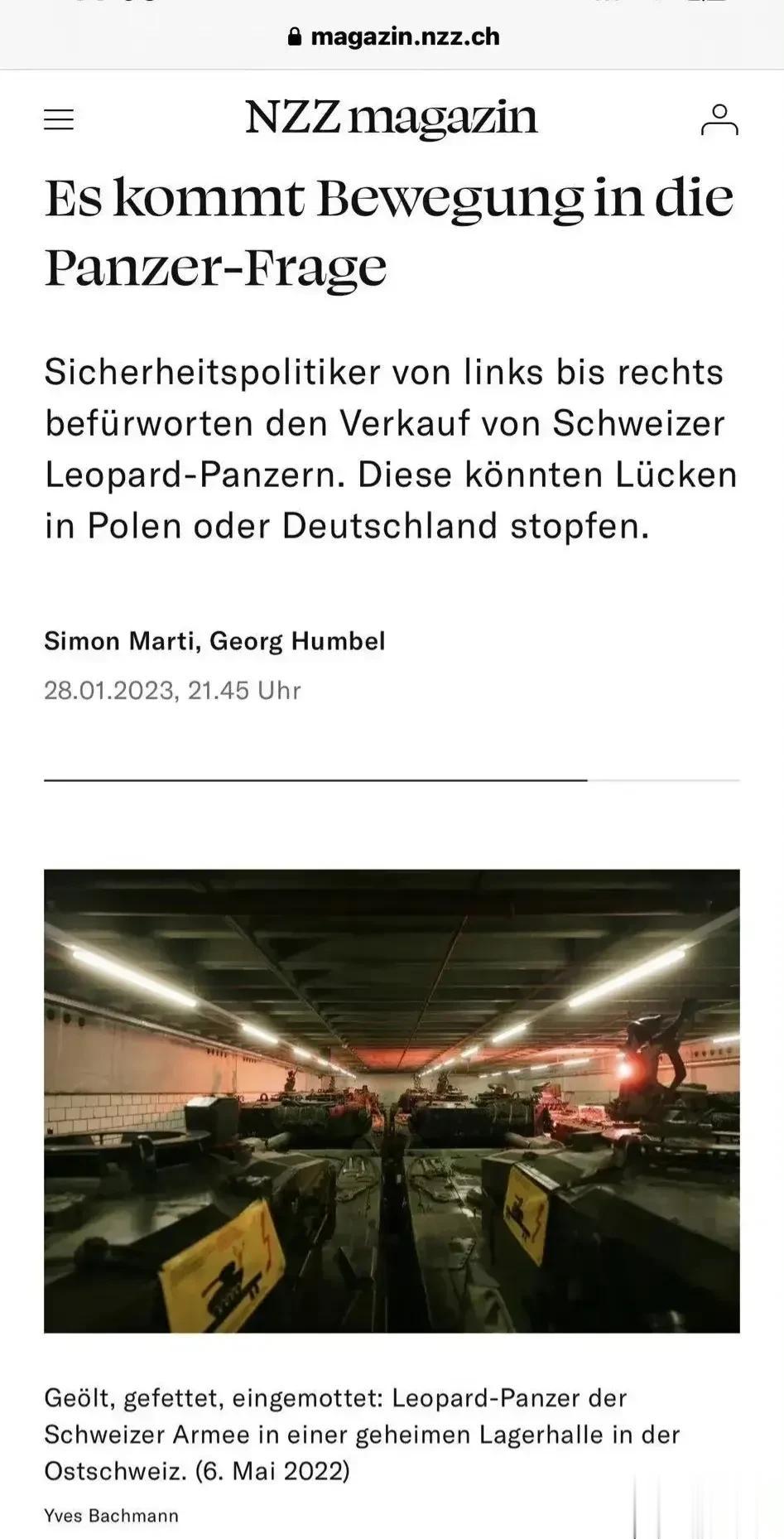【瑞士上火自己的96辆豹式坦克,却无人提出购买要求,瑞士这是要放弃中立国地位吗?】 俄罗斯卫星通讯社日内瓦2月2日电 瑞士国防部对卫星通讯社表示,瑞士库存96辆“豹 2”坦克,但尚无一个国家向伯尔尼提出购买要求,若有申请,只能由政府决定。 瑞士国防部说:“瑞士库存96辆封存‘豹’式坦克,伯尔尼尚未收到哪怕是一份来自德方的有关将部分坦克返销给生产商莱茵金属公司的申请。目前也没有来自其他国家的未决申请。若有申请,将予以考虑”。 瑞士这是在刷存在感吗?德国已经宣布向乌克兰提供豹2主战坦克,并且一些欧洲国家也向乌克兰提供豹2主战坦克。瑞士手中拥有购买的德国豹2主战坦克,可是却并没有乌克兰,或者美国要求瑞士向乌克兰提供主战坦克。 西方之所以没有提出这样的要求,估计是瑞士作为一个永久宣布的中立国,肯定不在美国和欧洲国家考虑之中。如果瑞士决定向乌克兰提供主战坦克,那就意味着瑞士将要放弃自己的中立国地位,这是要与俄罗斯为敌。 可是现在看来瑞士方面表达这样的态度,分明就是想要趁火打劫,毕竟整个欧洲都在向乌克兰提供主战坦克,甚至还要提供作战飞机,瑞士也不想失去这样一个墙倒众人推的机会。不过瑞士若真的那样做,那么瑞士所谓的中立国地位将不复存在。万一有一天俄罗斯将瑞士定为敌人,真不知道瑞士是否也需要抱紧美国大腿呢?