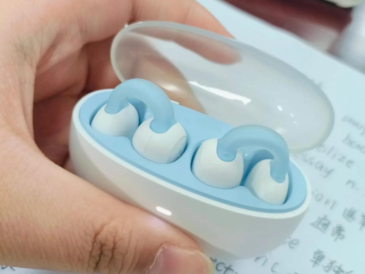 这款耳夹耳机采用的是轻量化结构,单耳轻巧,夹持稳固不夹耳,长时间佩戴无胀痛感,适配多数耳型。单次续航约5小时,配合充电盒总续航约20小时,满足日常全天使用。