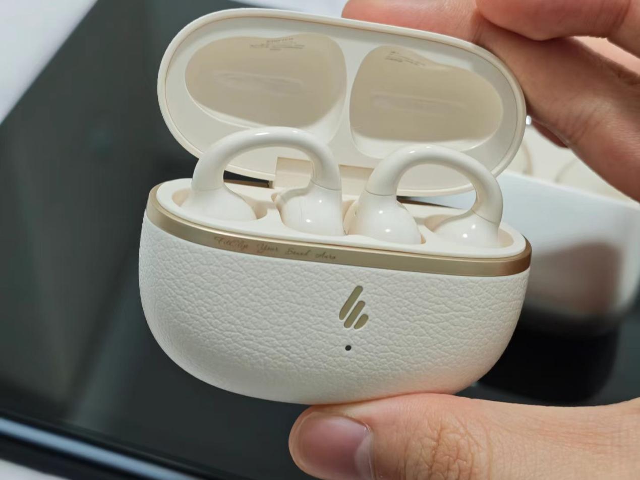 这款耳机采用的是轻量化的机身设计,搭配漫步者专利多曲率人体工学软梁设计,上耳近乎隐形无感,不会有不舒服的闷胀、压迫感。耳夹采用0.5mm柔韧镍钛记忆合金丝包裹亲肤硅胶,可随意弯折且快速回弹,不挤压耳骨,戴着出门玩一整天也没有不舒服。戴眼镜人群也没问题,镜腿与耳夹无摩擦干扰,运动时狂甩不掉,防护等级达IP56,防尘防泼溅,可应对日常暴出汗,运动党可以放心的。