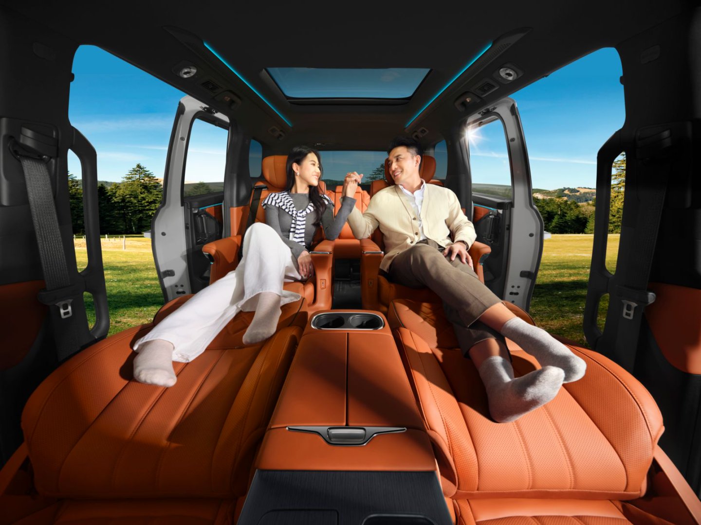 舒适的真谛,是让每一排都被温柔以待。这台长宽高5251 x 1893 x 1823mm、轴距3070mm的MPV,把空间利用做到了极致。第二排双零重力座椅堪称“移动头等舱”,16点气袋按摩覆盖肩背腰腿,三种模式媲美专业按摩椅,配合10层复合结构与5mm慢回弹海绵,颠簸路面也能稳坐舒心;5英寸扶手屏一键启动SPA模式,座椅自动调节至166°躺平姿态,雅马哈头枕音响传来立体音效,长途出行也能惬意放松。