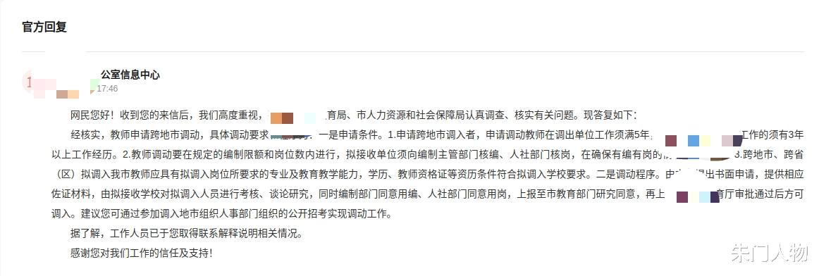 但得到的答复却很官方,在列举了多项调动的要求之后,最后建议该网友通过调入地人事部门组织的公开招考,实现工作调动。