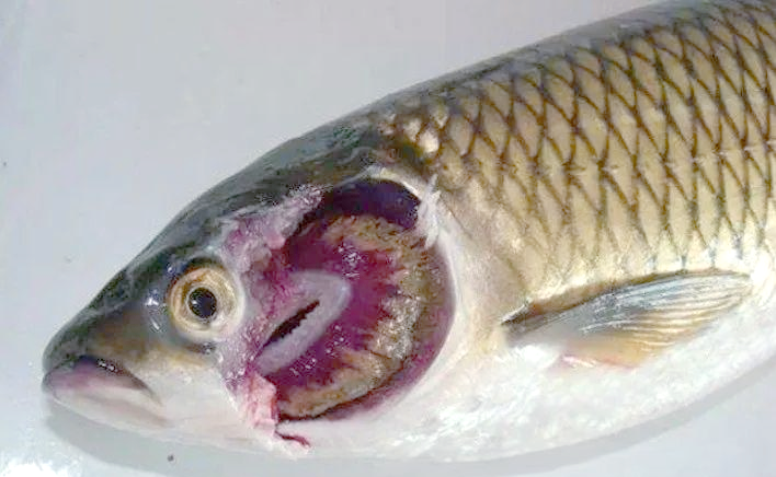 赤皮病:鱼体表充血发红,鳍基部充血腐烂,鳞片脱落烂鳃病:鳃丝腐烂发白,黏液增多,鳃盖内表皮充血肠炎病:肛门红肿外突,肠道充血发炎,粪便白色或脓样