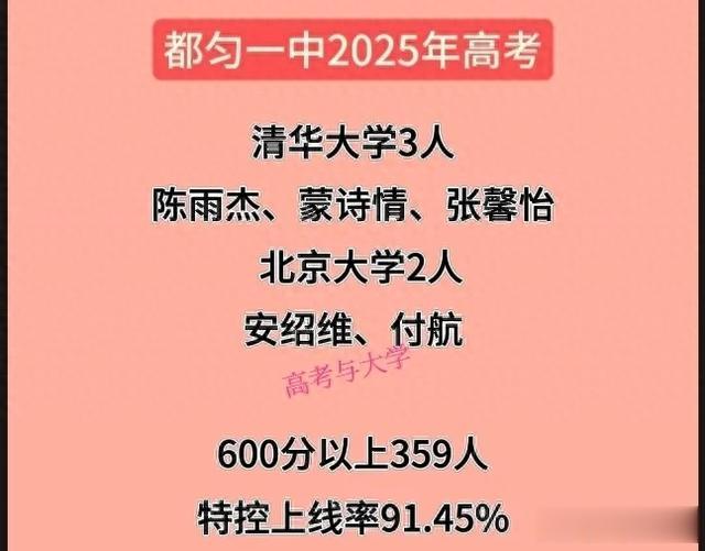 都匀一中2025年高考清北录取5人,清华大学3人:陈雨杰、蒙诗情、张馨怡,北京大学2人:安绍维、付航。