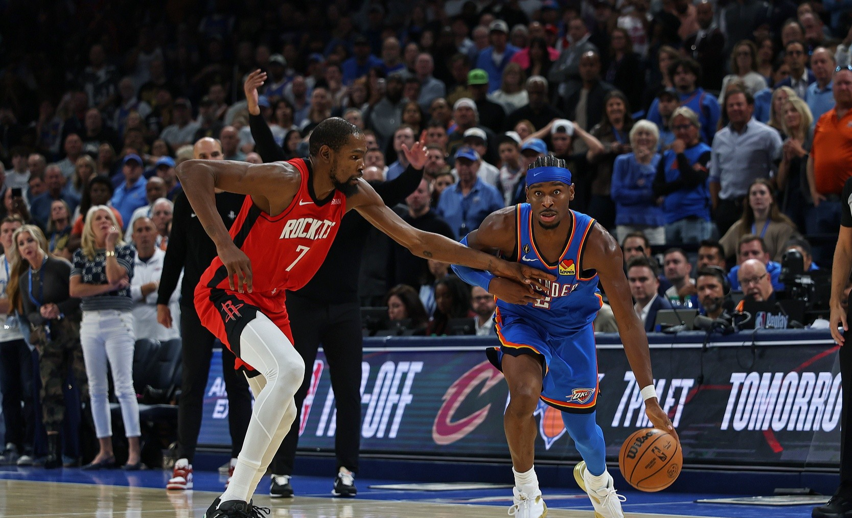 这是杜兰特和杰夫·格林再度遭遇老东家,虽然雷霆多名轮转球员休战,但是对火箭并非易事,当杰伦·布朗休战期间,火箭面对凯尔特人的残阵,竟然毫无招架之力,惨败给对手。