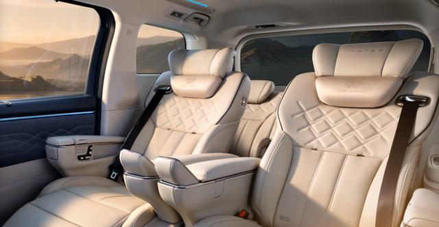 座椅表层采用全粒面Nappa真皮与超软包覆材质,运用德国杜克普特种缝纫设备以0.5mm的缝纫精度一针一线传递出细腻触感。16向全电动记忆座椅靠背调节角度可达173度,几乎可以完全平躺,为每一位乘客精准匹配到最合适的坐姿。