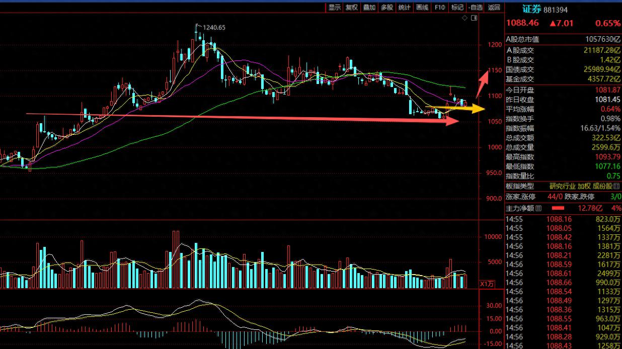 大盘与券商共振,且与昨预料一样,与12月5日(上周五)的走势近似。截止收盘,三大指数集体上涨,上证涨0.41%,收报3889.35点;深证成指涨0.84%,收报13258.33点;创业板指涨0.97%,收报3194.36点。全市成交21192亿,较昨日18854亿放量2337亿。
