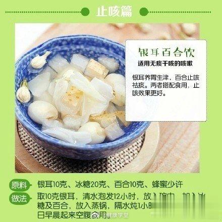 【润肺止咳的汤羹茶饮[同意]】感冒初、后期,适宜食疗。罗汉雪梨,养阴清热;银耳百合,养胃生津;紫罗兰泡茶,舒缓咳嗽及喉咙不适;蜂蜜生姜萝卜粥,排出体内病菌与寒气……11款润肺止咳的汤羹茶饮,为您倾心推荐,拿好不谢