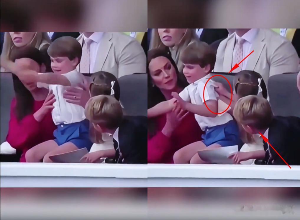 凯特王妃那举着奶瓶试图哄着儿子的手,成了最佳背景板,哈哈哈哈!