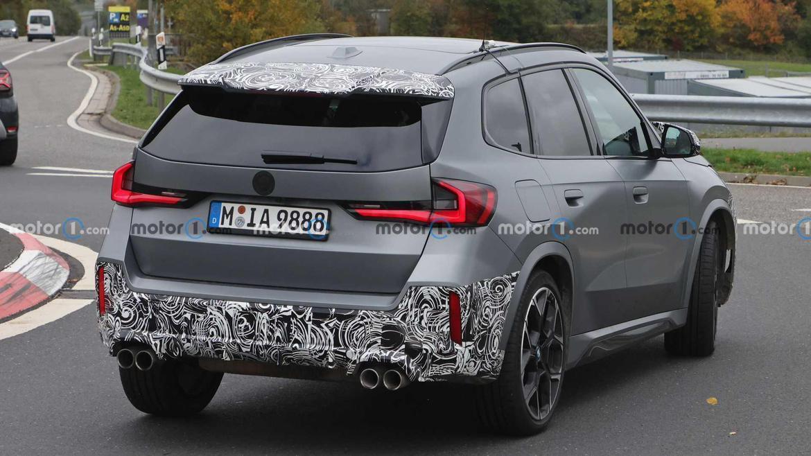 距离2023款宝马X1亮相已经过去了五个多月,相比于以往的X1车型,2023款X1的轴距和尺寸有所加长,内饰也换上了宝马家族最新的双联屏设计,最近宝马X1 M35i车型也得到了进一步曝光。 从目前曝光的低伪装图来看,M35i的外观将更加运动化并采用了四出排气设计,格栅设计也更为激进,后视镜部分仍被伪装涂层覆盖,大概率使用了碳纤维覆盖件,内饰部分与2023款X1基本保持一致。 M35i车型搭载了一具宝马2.0T四缸涡轮增压发动机,动力来到315马力并且标配了四驱系统,预计新车将在今年年底正式亮相。【来自懂车帝车友圈】