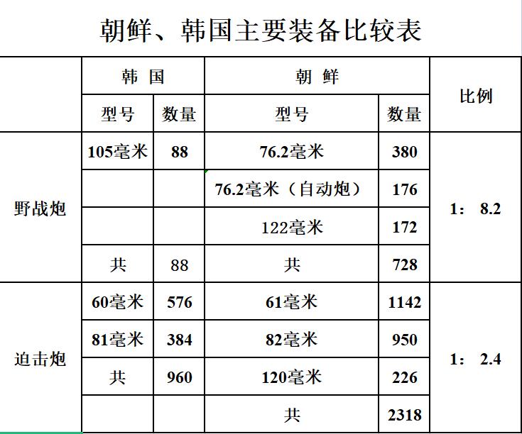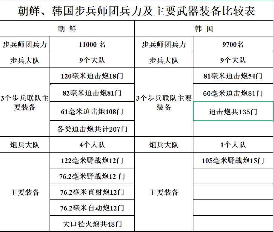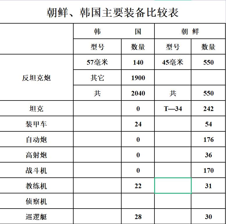 笔者昨晚参照美国、日本、韩国的朝鲜战争战史,手工做成了几张开战前朝韩双方实力对比