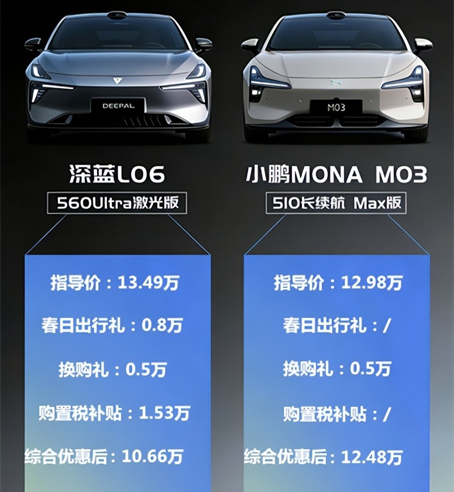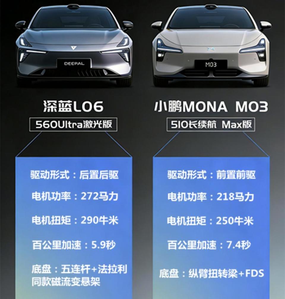 今天我们就拿深蓝L06 560Ultra版和2026款小鹏MONA M03 510 MAX版来做一个简单明了的对比,看一看这两款车的PK,到底哪款能够占据上风?