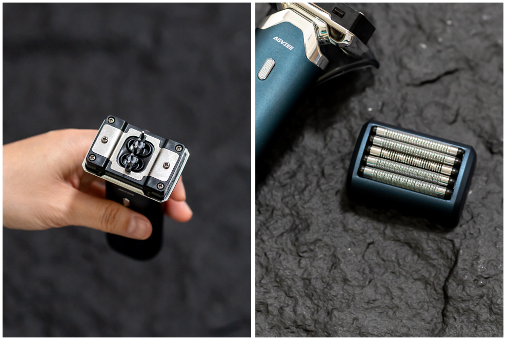 如此优秀的表现靠的是未野的“硬核配置”。未野往复式剃须刀采用德国进口浮动五刀头+598HV不锈钢刀叶,配合0.041mm微米级超薄网膜,能精准捕捉细短胡茬;纯铜电机每分钟27000转,带来685万次/分钟的切剃运动,再加上30°锐角薄刃工艺,硬胡须也能“一刀切”,不用反复摩擦皮肤。