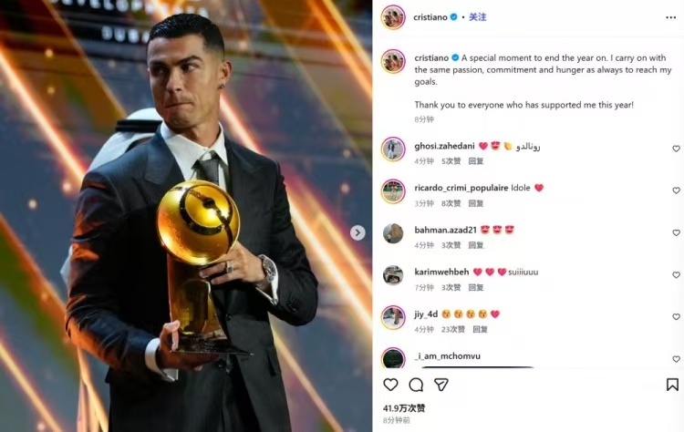 2025年的41球,是C罗献给足球世界的深情告白;即将开启的2026年,或将成为足坛铭记传奇的崭新序章。当957球的数字不断逼近千球里程碑,每一粒进球都将成为历史的注脚,每一次登场都在续写着足坛不老的神话。于C罗而言,千球从来不止是一个冰冷的数字,更是对二十余载坚守热爱的最好馈赠;于足球运动而言,这样一位跨越时代的射手向千球发起冲击,本身就是一场值得全足坛屏息瞩目的盛宴。