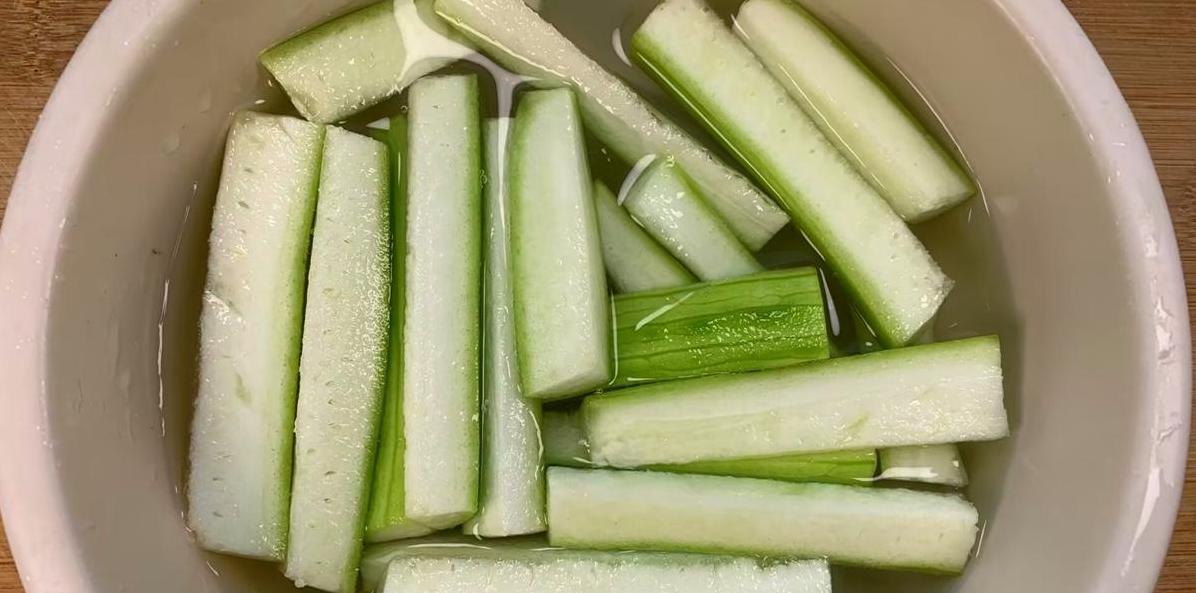 这样做的好处是丝瓜更加翠绿,还不发黑。