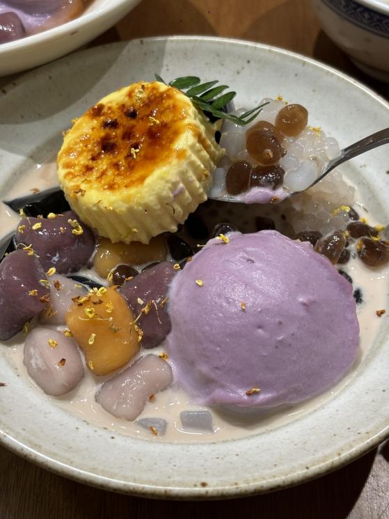 一定要试试这款芋泥烤布蕾烧仙草!一勺下去超惊喜,Q弹仙草、绵密芋泥和柔滑布蕾在嘴里相遇,冷热交织的口感,每一口都让人满足~