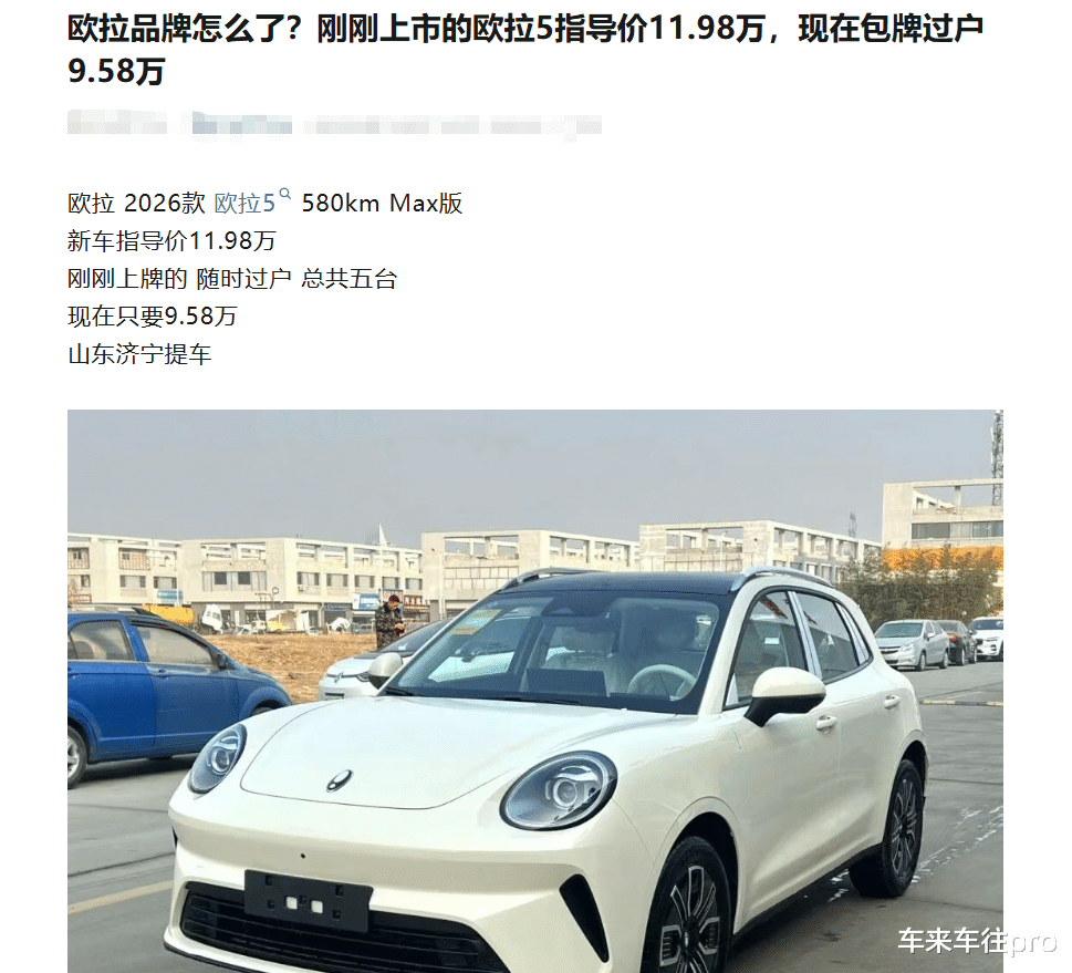 在山东济宁等地,欧拉5的580km Max版,指导价11.98万元,已经出现包牌、包过户、直接9.58万元成交的情况,而且并非单一经销商行为,而是多家长城体系集团同时在“处理车辆”。原因也很直白:店总预判失误,预订单结构严重跑偏。