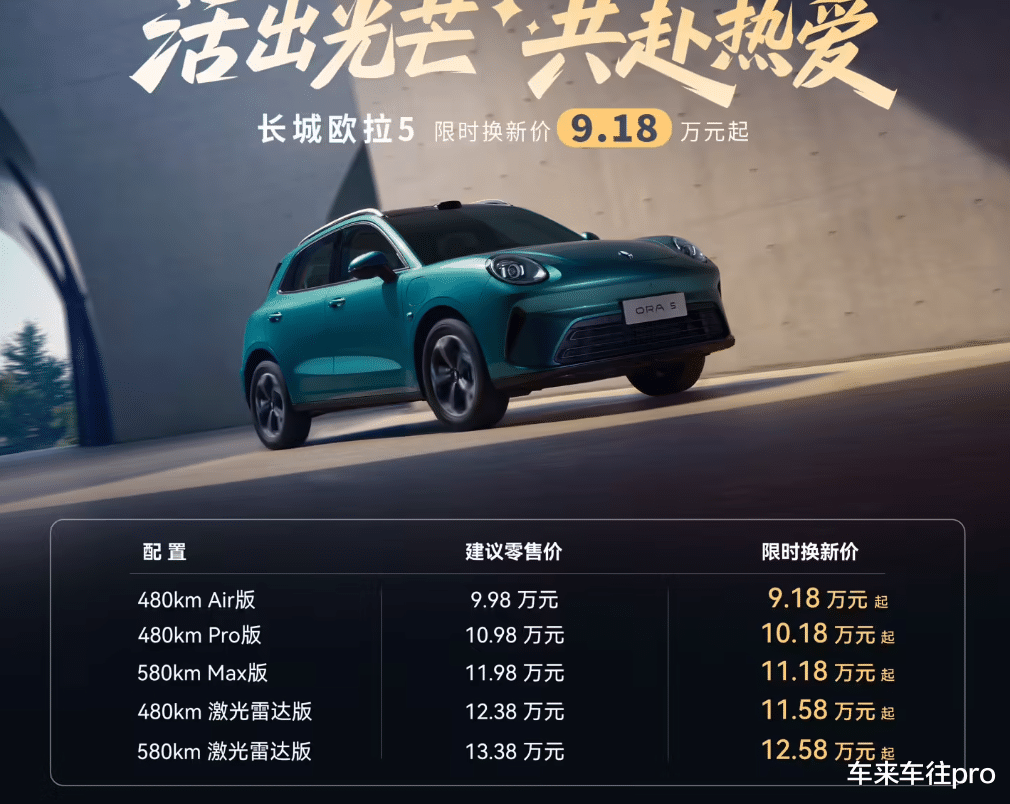 事情的主角,是刚上市不久的欧拉5。作为欧拉品牌最新的紧凑型纯电SUV,它的官方定价体系并不算激进:9.98万到13.38万元,限时换新价最低9.18万元起,纸面上看,逻辑清晰,覆盖人群明确。但现实市场却给了欧拉一个非常残酷的反馈——价格体系还没站稳,终端已经崩了。