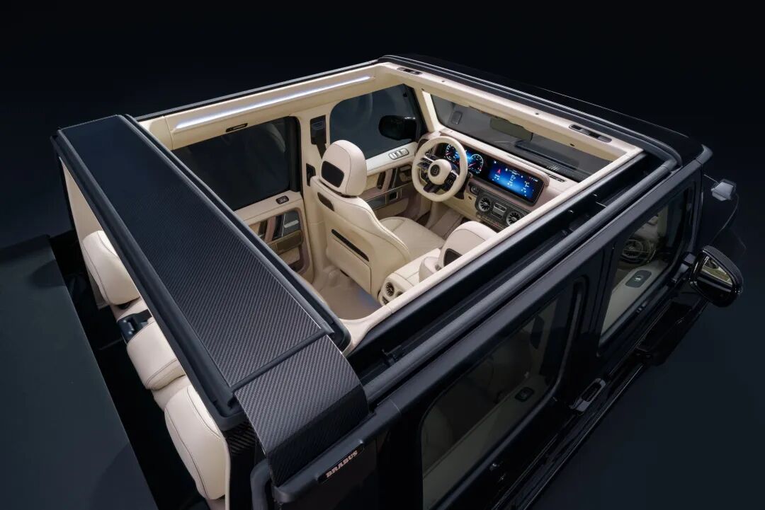 这两款车都是基于梅赛德斯-AMG G63打造,配备了一套“高度复杂”的可伸缩软顶系统,由超过500个定制部件组成。这个数字令人惊叹,但实际操作很简单:按下按钮,两段式车顶可在20秒内完成开合。车主还能享受到配备加热功能的玻璃后窗。