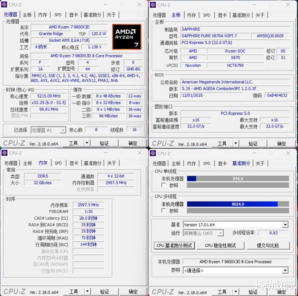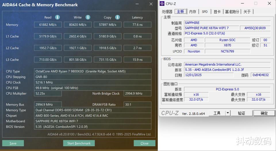 CPU: 9800X3DGPU: 9070XT 氮动内存: 6000MT/s CL28 16GBx2