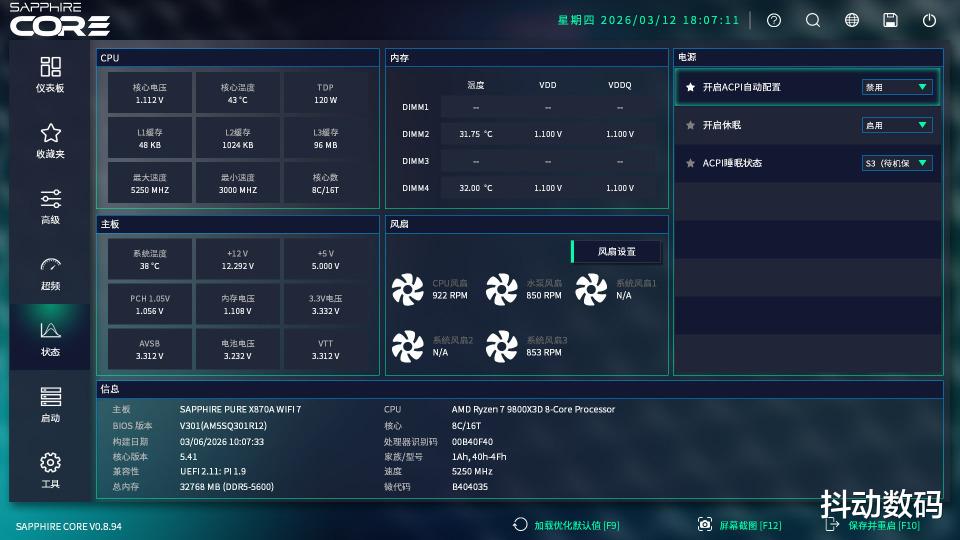 BIOS界面不出所料,目前还没有看到PURE极地系列专属的白色UI版本。我更希望蓝宝石可以为自家旗舰提供专属配色的UI界面,以体现其旗舰属性。