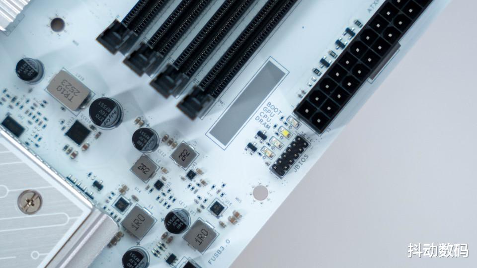 主板的DeBug指示灯位置也做了调整,放在了较为隐蔽的24 Pin供电接口一侧。这样就可以避免在顶部位置上因为灯光影响整体美观了。