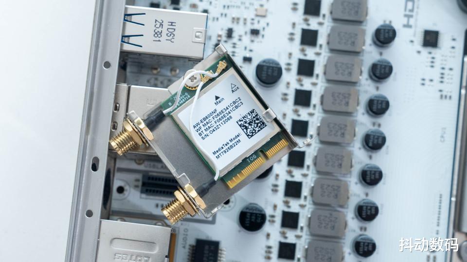 主板上的WiFi 7无线网卡是AzureWave(海华科技)AW-EB600NF,MediaTek(联发科)MT7925B22M,提供了Wi-Fi 7 + 蓝牙 5.4双模无线模块。