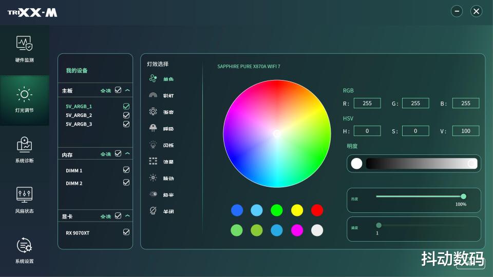蓝宝石显卡方面的管理软件是大家熟悉的TRIXX,而主板端则是有TRIXX-M软件来进行管理。我是觉得后续可以合并两个软件来实现不同设备的共同管理。