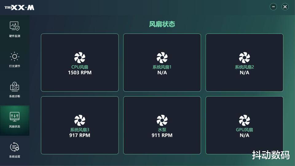 另外也有单独的风扇状态信息设置,其实感觉可以合并到系统诊断界面内。