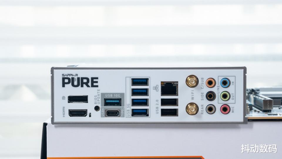 主板后置IO部分也提供USB 4.0 接口扩展,以及WIFI7和5G有线网卡。USB-A接口则有7个,其中一个10G设计,四个5Gbps的,还有两个USB 2.0接口方便玩家扩展。