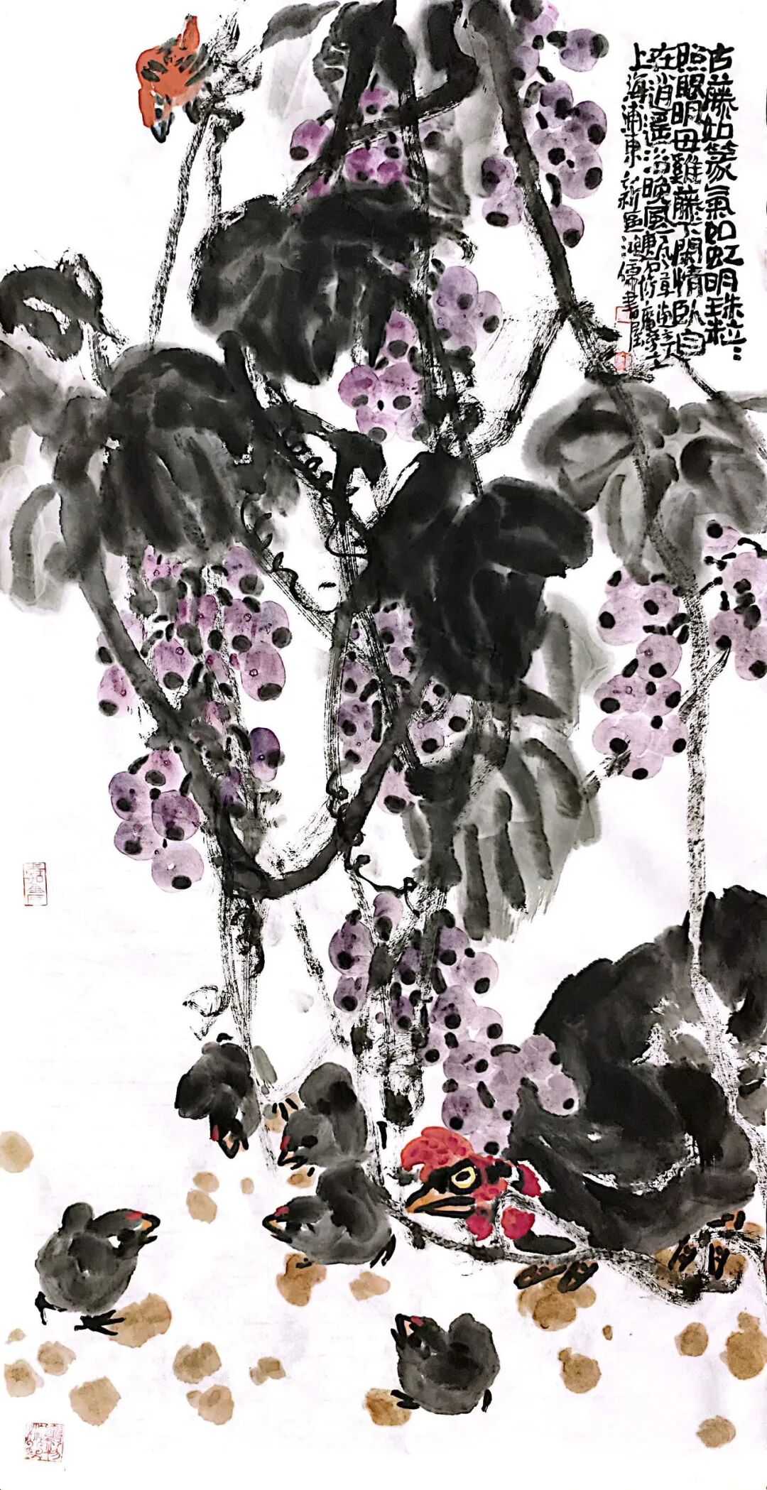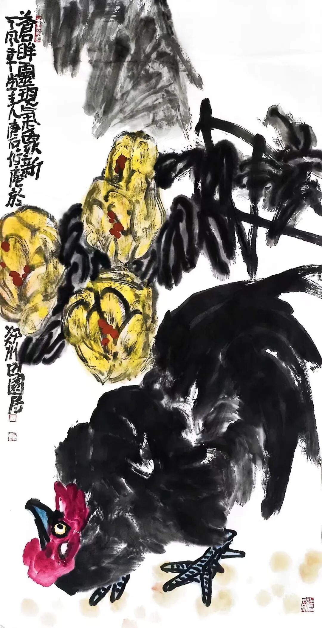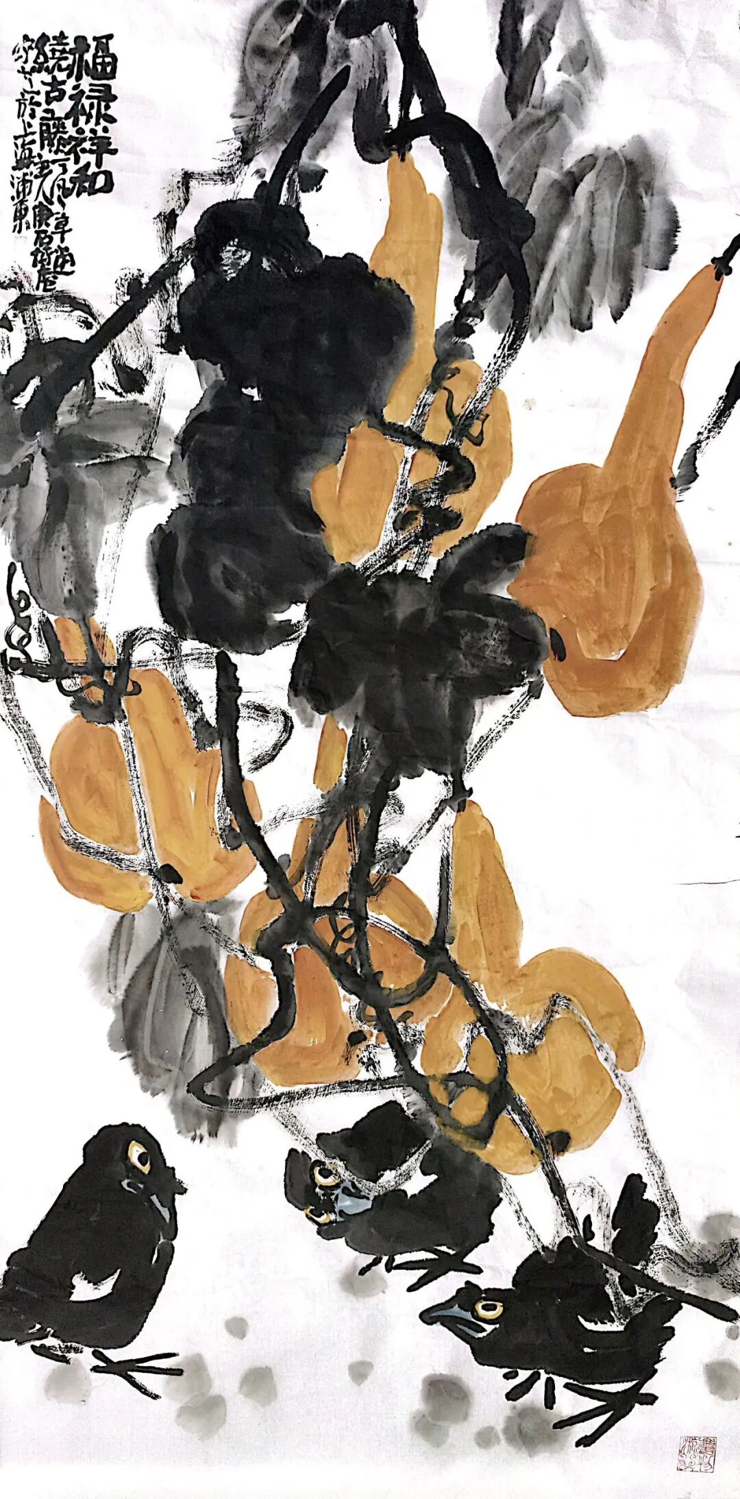 他笔下那些浑厚的南瓜、饱满的石榴、健硕的禽鸟,之所以毫无呆板匠气,正因它们承载的不仅是物象,更是那份源自童年、浸透生命体验的乡土记忆与真挚情感。