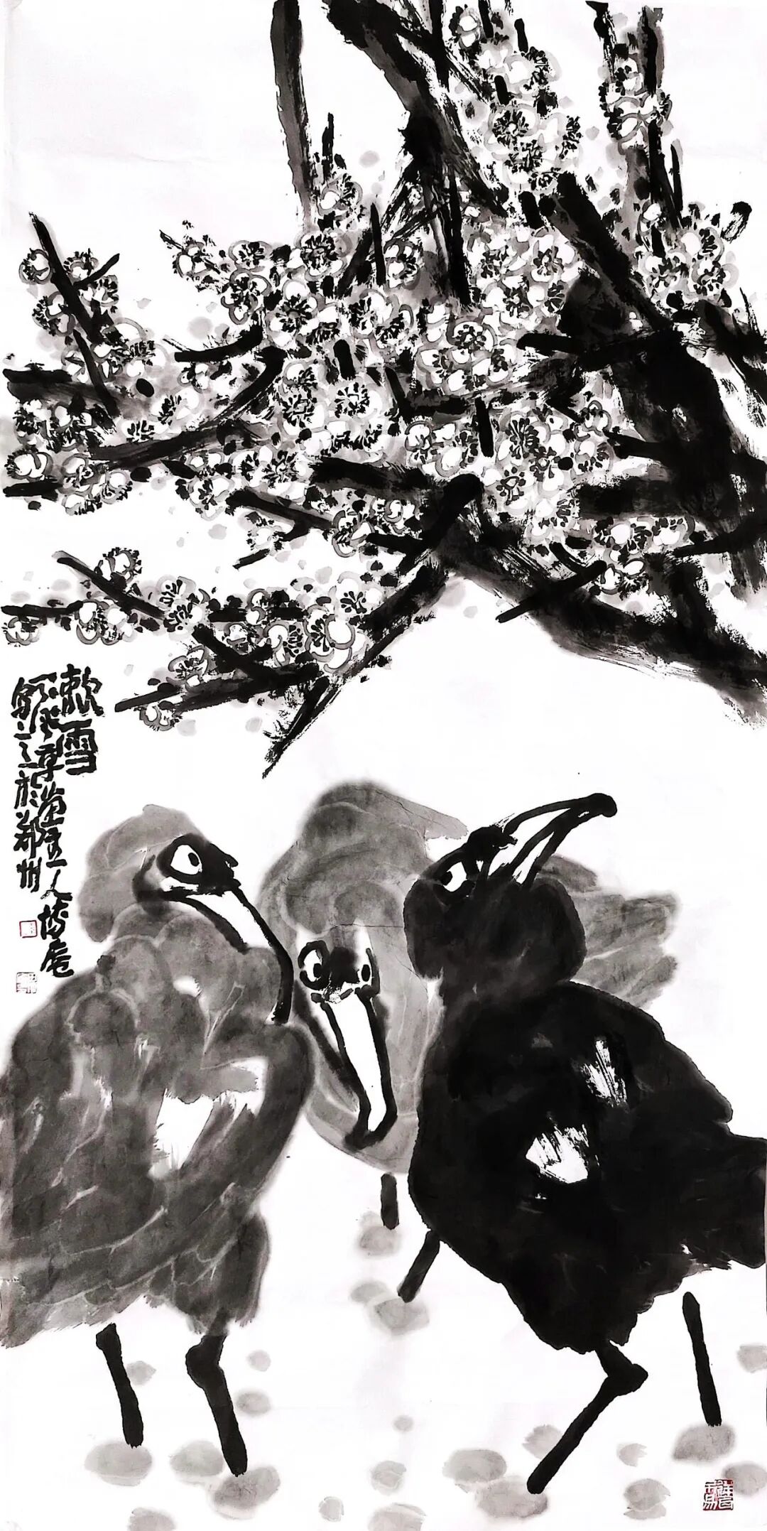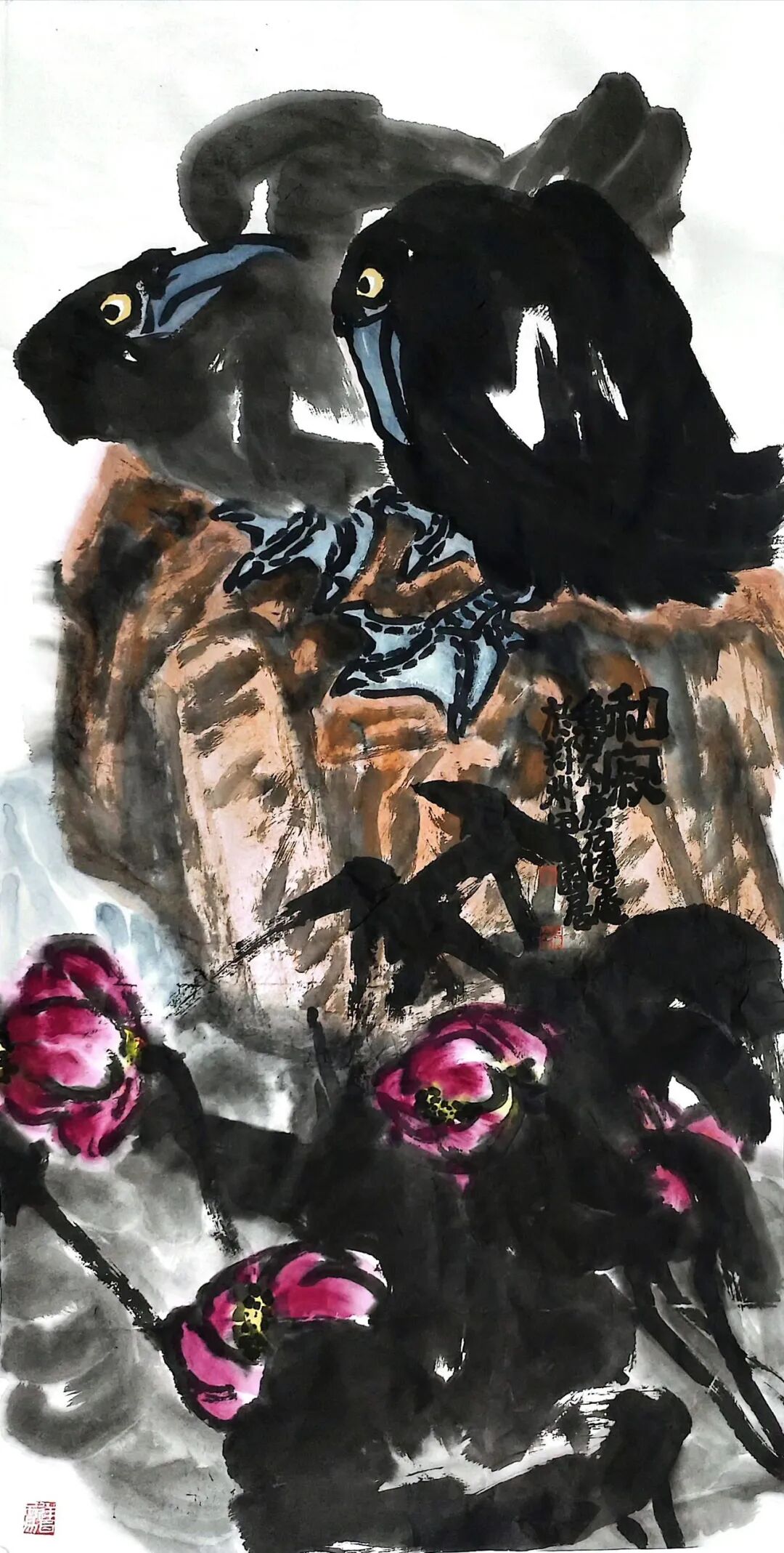 • 视觉语言的融会贯通:装饰画的构成感、广告画的色彩张力、白描的线条韵律,这些来自不同领域的视觉养分,都被他悄然吸收、消化,最终转化为其大写意语言中独特的形式感与时代感。