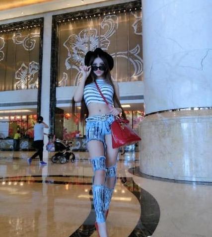 妹子的时尚我真的看不懂,虽然现在很流行牛仔裤,但是这条牛仔裤的破洞是不是有点过大了?原谅我不懂现在的时尚。