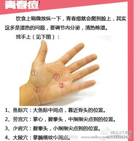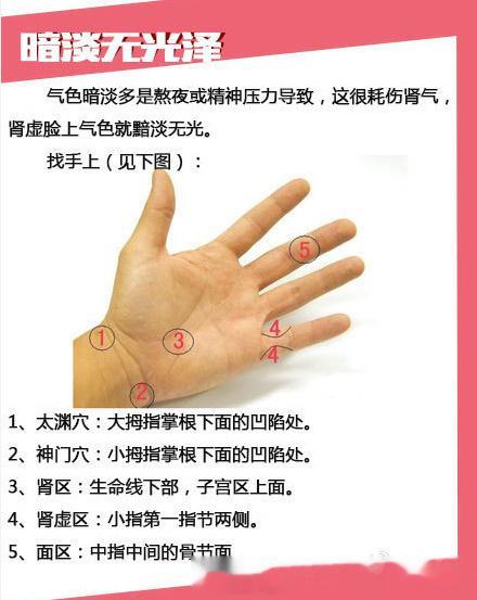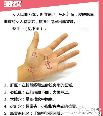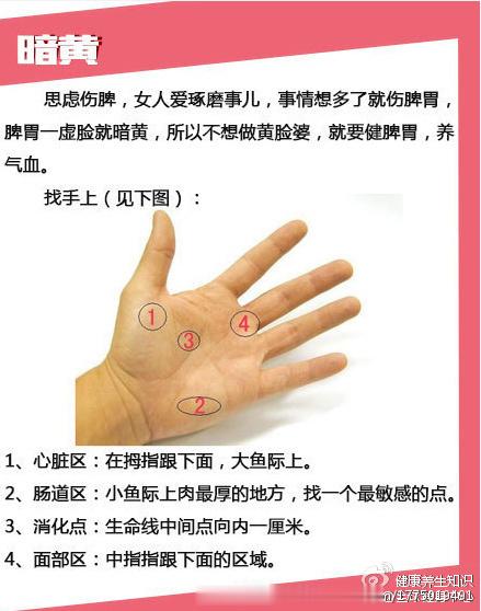 【手疗把自己“捏”漂亮】中医认为,五脏六腑之气皆上注于面。我们的脸还充当了健康显示屏的作用,那些恼人的痘痘、斑点等,往往反映了内分泌的状况,所以,想美不妨就经常捏揉你手上相应的反射区和穴位吧。