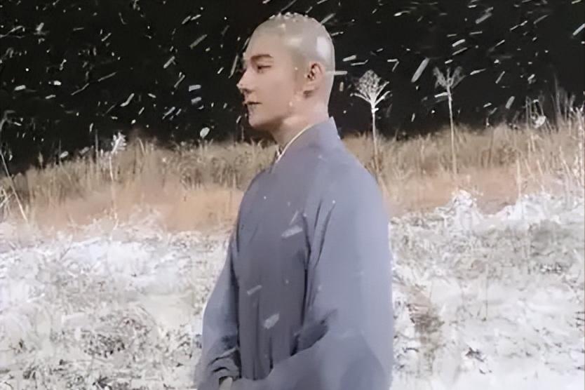 就比如男配角“圆通”的夜观天象,一片雪地里站着一个光头和尚。